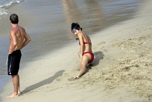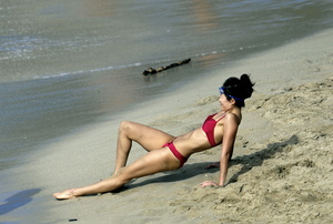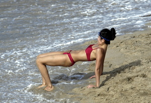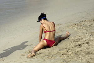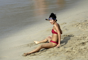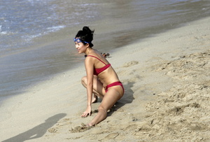 Zhang Ziyi - Bikini red at the Beach in St. Barts 2009-01-02