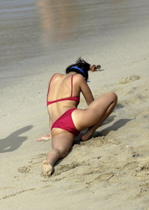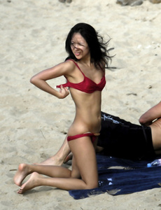 Zhang Ziyi - Bikini red at the Beach in St. Barts 2009-01-02